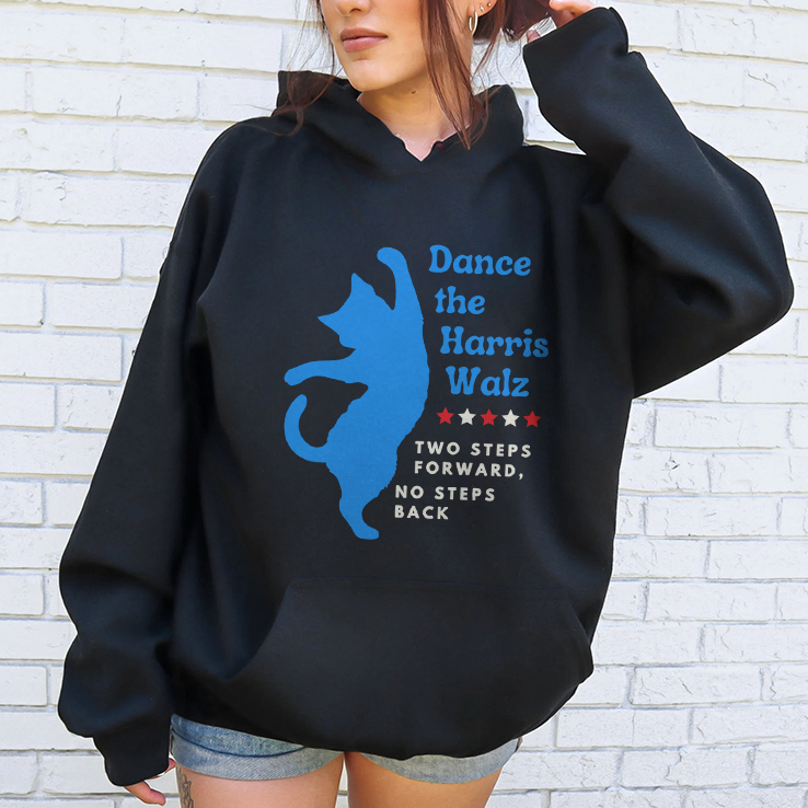 The Dance The Harris Walz Two Steps Forward No Steps Back Cat Shirt blends humor, satire, and political support, positioning Kamala Harris as a strong, forward-moving leader who is unbothered by stereotypes or criticism.