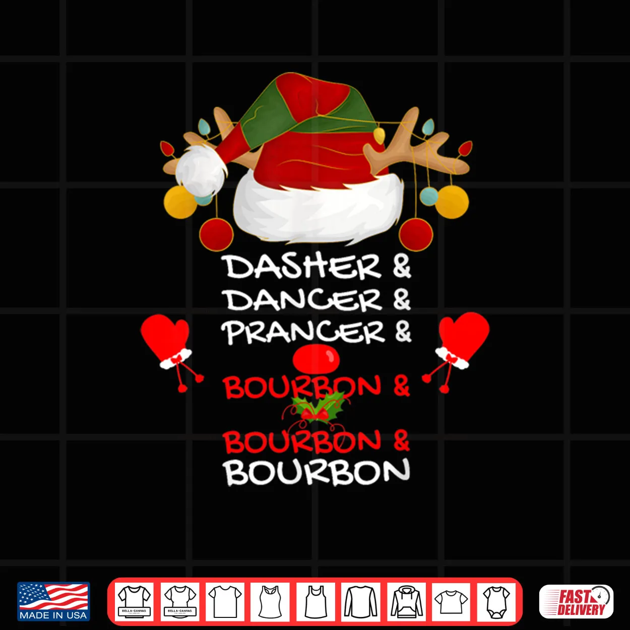Dasher Dancer Prancer & Bourbon Christmas Holiday Reindeer Shirt, Bourbon Christmas, Dasher Dancer Prancer, Holiday, Reindeer