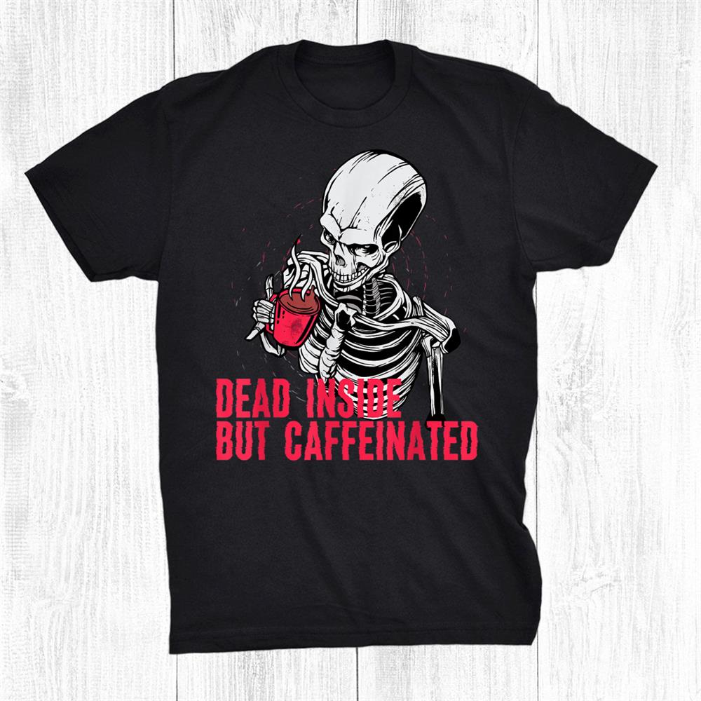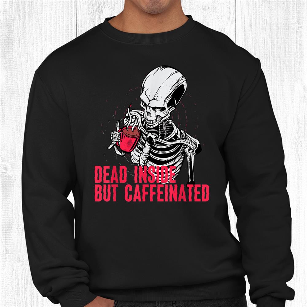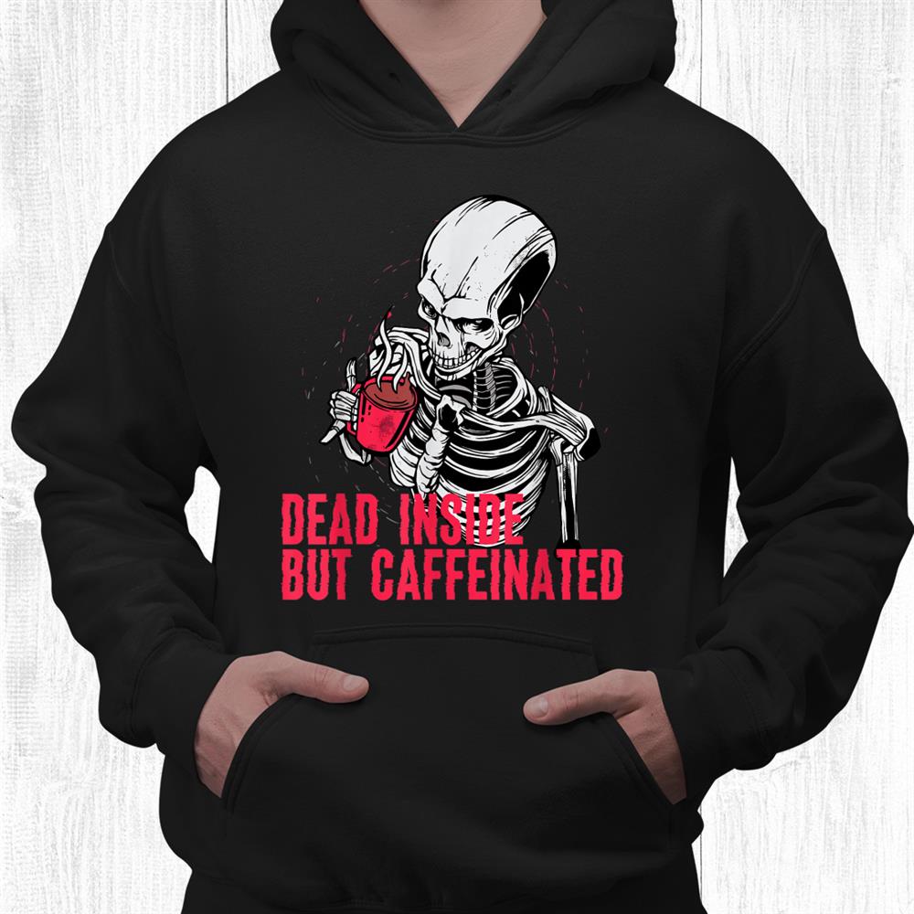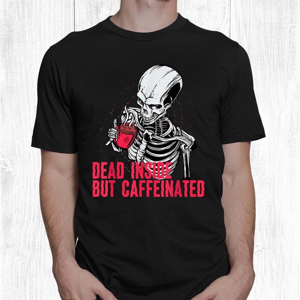 Dead Inside But Caffeinated Funny Skeleton Halloween Coffee Shirt, hoodie, sweatshirt, long sleeve and ladies T-shirt