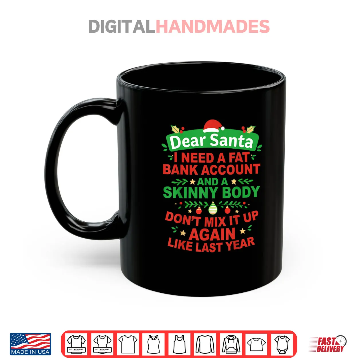Mug Dear Santa I Need Fat Bank Account and Skinny Body Dont Mix Shirt