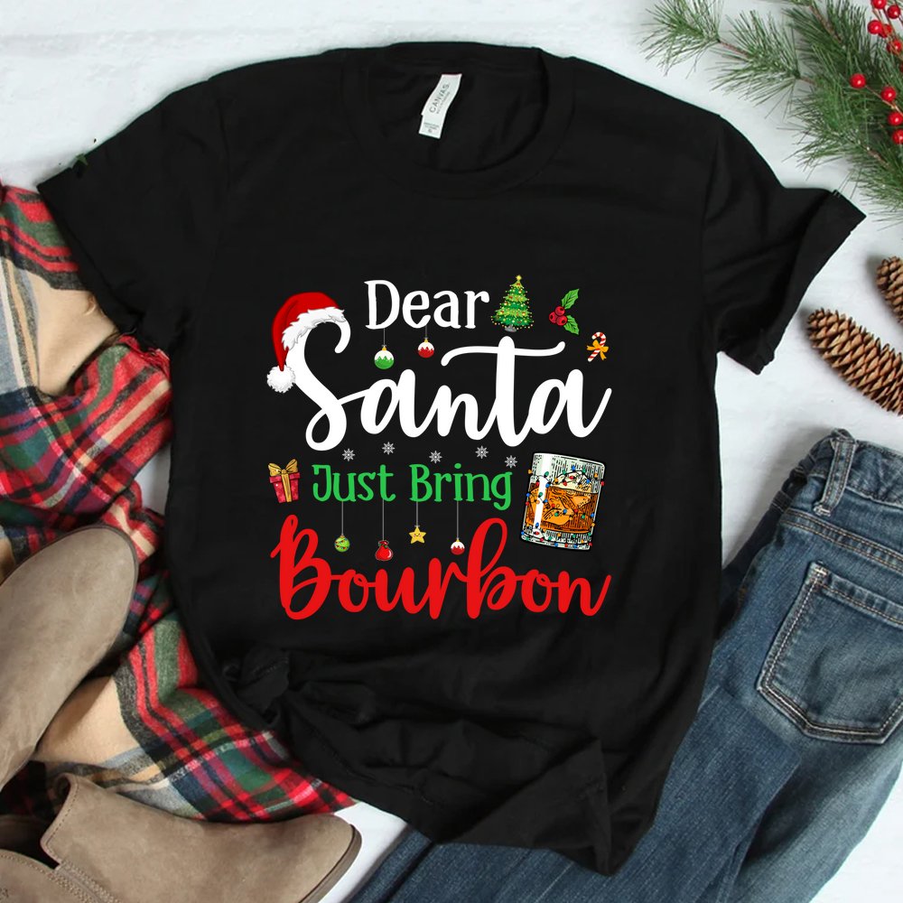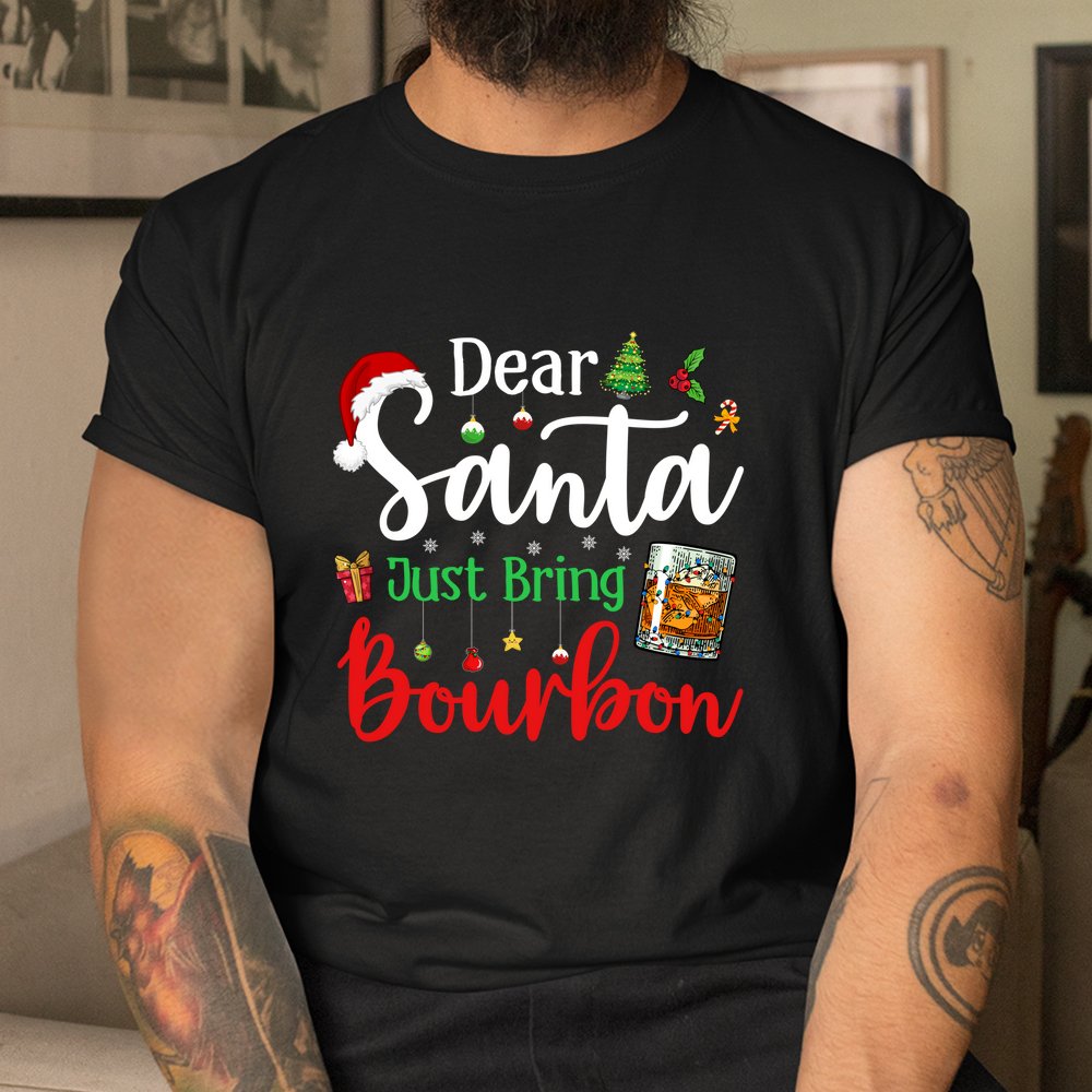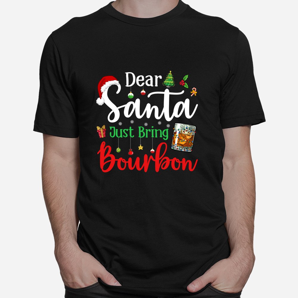 Dear Santa Just Bring Bourbon Christmas Pajamas Shirt, hoodie, sweatshirt, long sleeve and ladies T-shirt