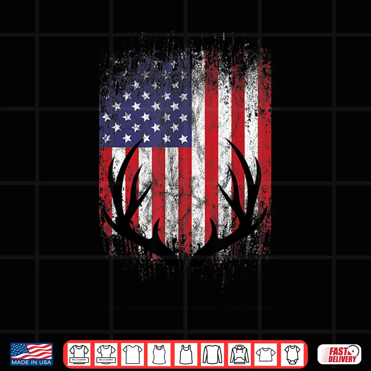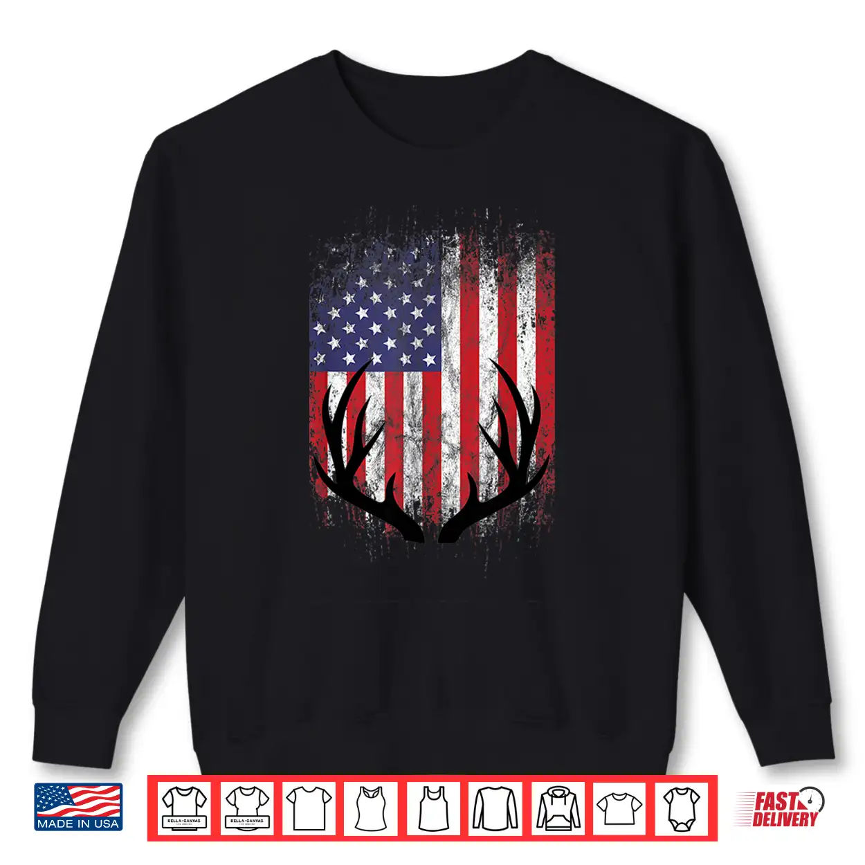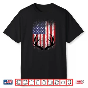 Deer Hunting American Flag Whitetail Buck Antlers Shirt