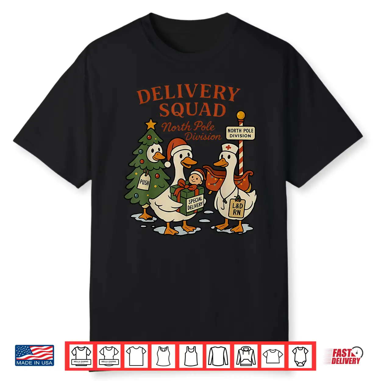 Delivery Squad Labor And Delivery Nurse Christmas Goose Ob Shirt