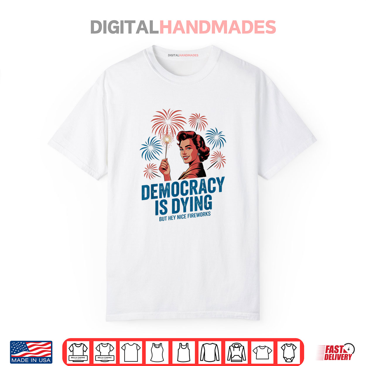 Democracy Is Dying But Hey Nice Fireworks 4th of July Retro Shirt