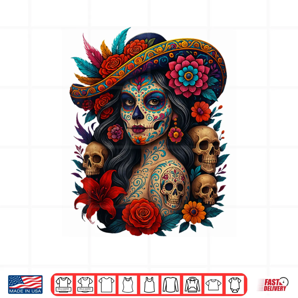Dia De Los Muertos Mexican Day of The Dead Floral Shirt