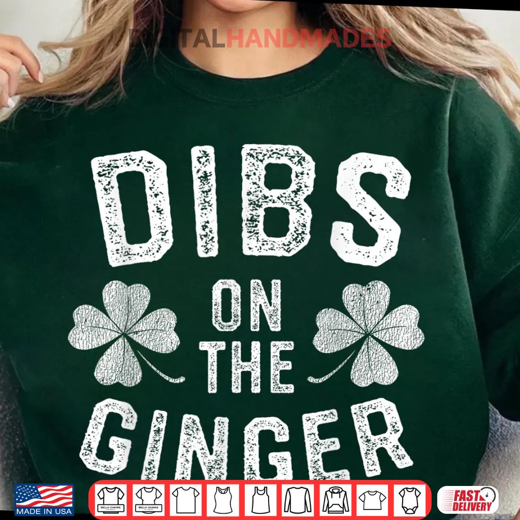 - Showcases the playful phrase “Dibs on the Ginger,” adding a fun and flirty twist to your St. Patrick’s Day attire.