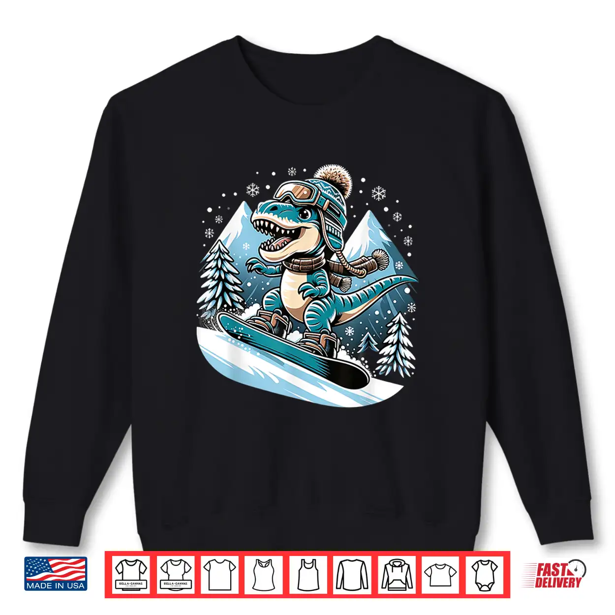 Dino Snowboarding Fun Cool Snowboard For Men Women Kids Shirt