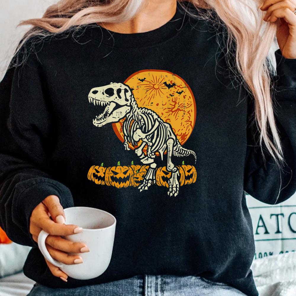 Dinosaur Skeleton T Rex Scary Pumpkin Moon Halloween 2024 Shirt, hoodie, sweatshirt, long sleeve and ladies T-shirt