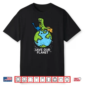 Dinosaurs Save Our Planet Cute Earth Day 2020 Boys Kids Gift Shirt