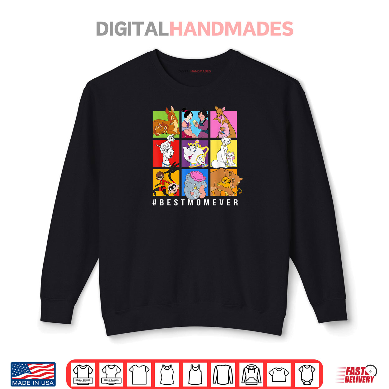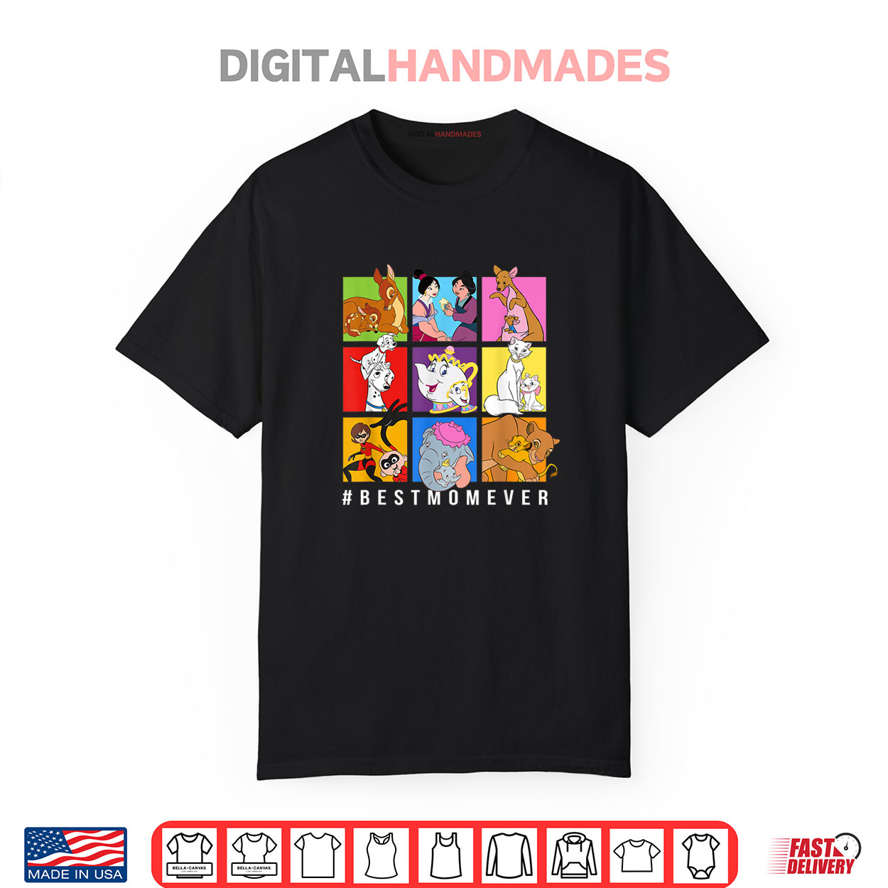 disney characters best mom ever, mother’s day graphic tee, spring disney apparel, funny mom humor shirt, bold character design, playful casual spring fashion, lighthearted disney tee, springtime quirky mom style, humorous disney shirt, cute mom apparel