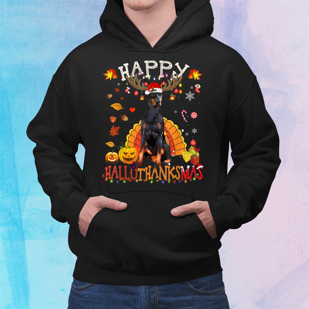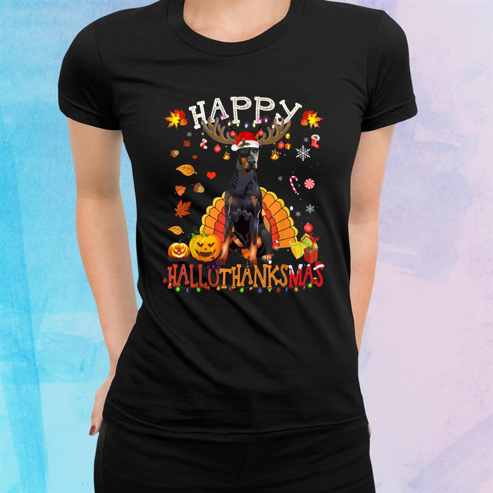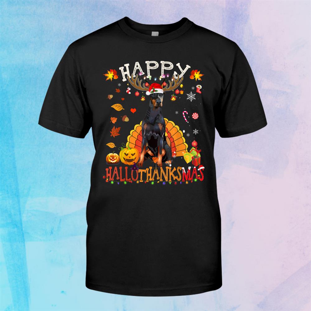 Doberman Happy Hallothanksmas Halloween Thanksgiving Xmas Shirt