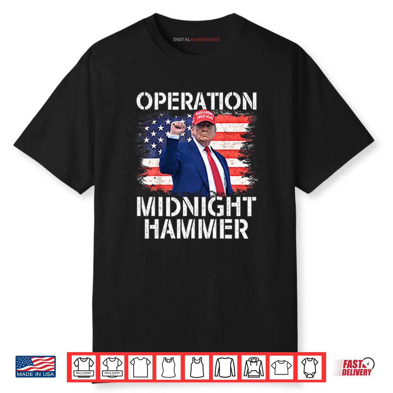 Donald Trump Operation Midnight Hammer USA Flag Shirt, Operation Midnight Hammer Trump Tee Shirt, Funny Political Satire And USA Flag Gift Shirt, Donald Trump Supporter Apparel Style Shirt, Fictional Military Operation MAGA Fun Shirt, Patriotic And Conservative Humor Shirt, Trump As Commander In Chief Parody Shirt, Election Year And Political Comedy Shirt, Special Ops For Trump Fans Merch Shirt, American Pride And Trump 202_ Shirt