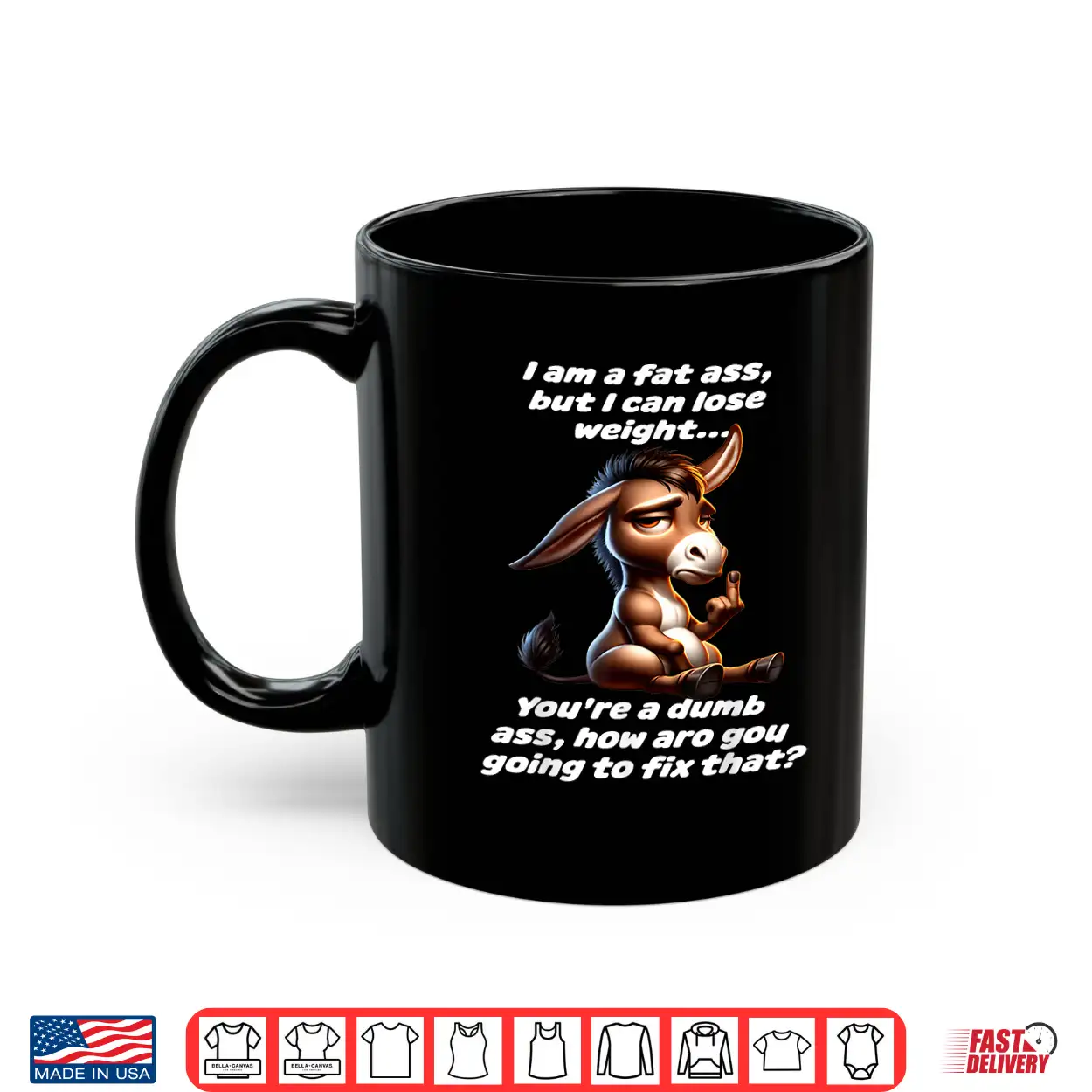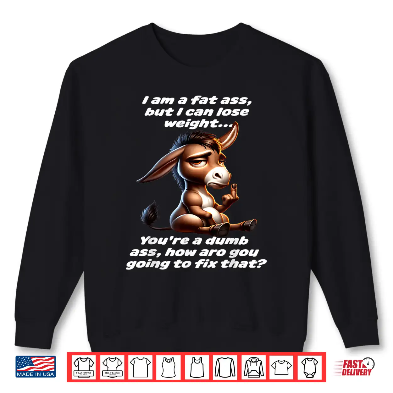 Relatable, Personality, Weight Loss, Insult Pun, Fat Ass Donkey, Lose Weight, Sarcastic, Humor, Witty, Bold