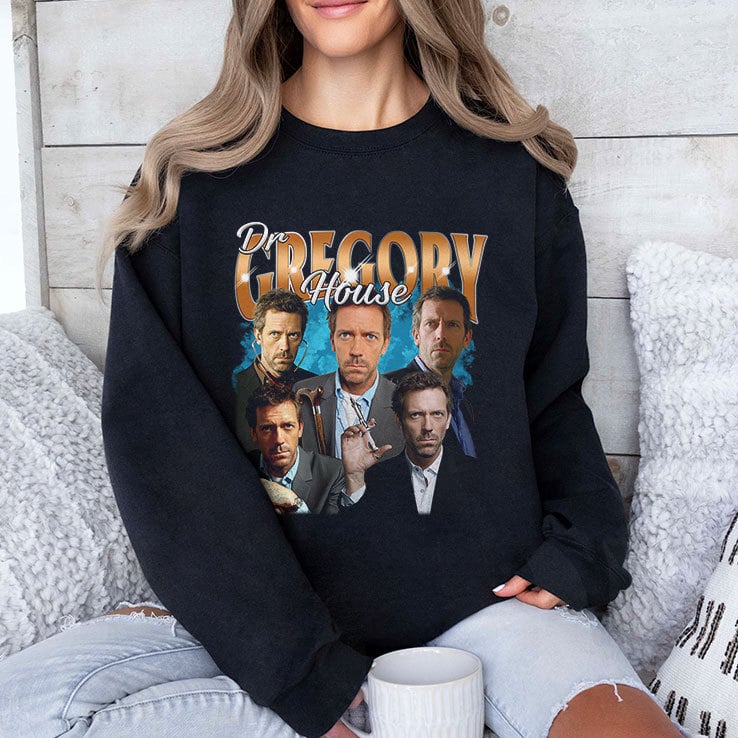 Dr. Gregory House is the main character of the TV show House, M.D., portrayed by Hugh Laurie. The shirt features images of Dr Gregory House, reflecting his sharp wit, sarcasm, and medical genius.