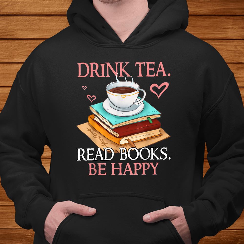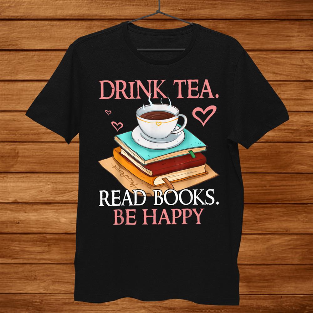 Drink Tea Read Books Be Happy Bookworm Shirt