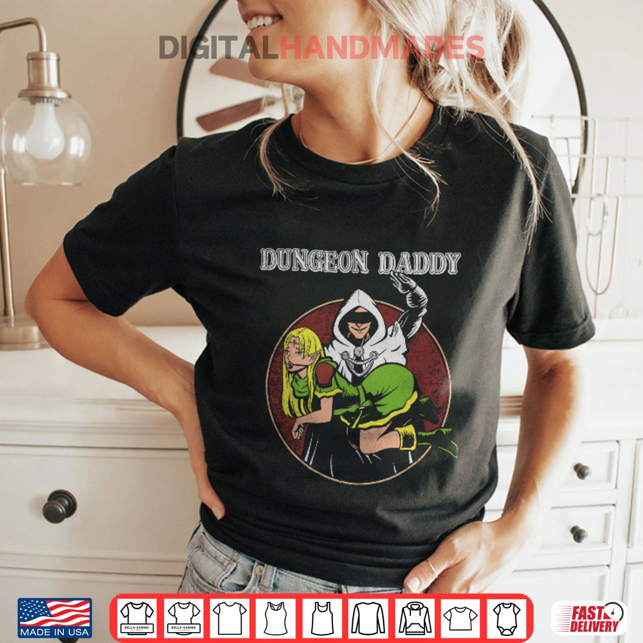The “Dungeons & Dragons Dungeon Daddy T-Shirt” is a piece of apparel that plays on the popularity of the Dungeons & Dragons (D&D) role-playing game, combined with a playful, slightly humorous use of the term “Daddy.”