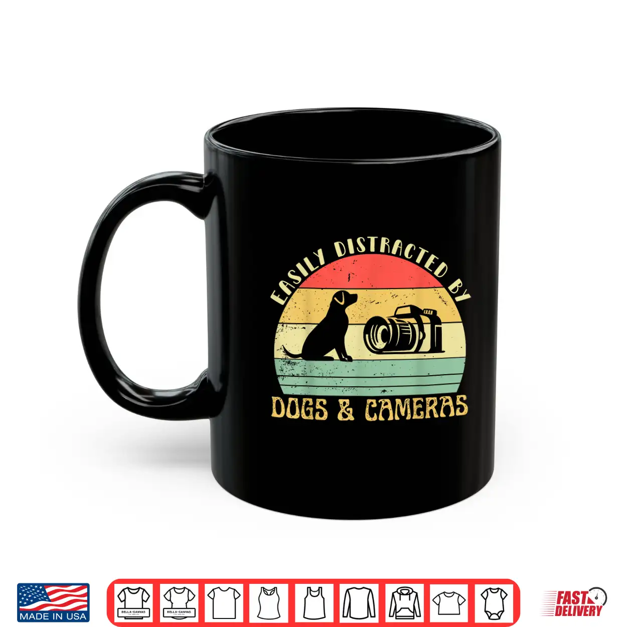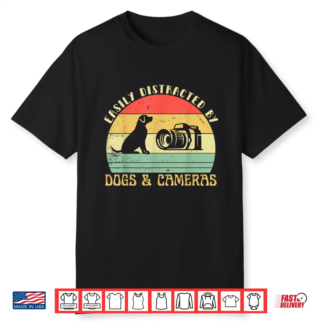 Easily Distracted By Cameras Dogs Retro Photographer Shirt