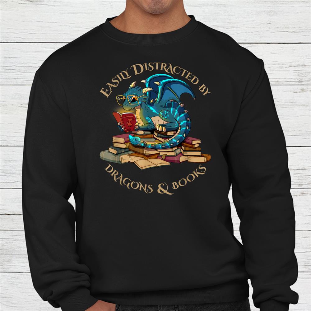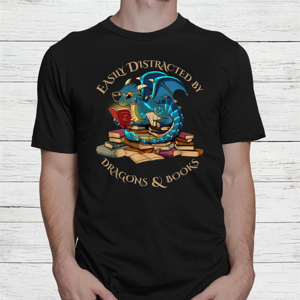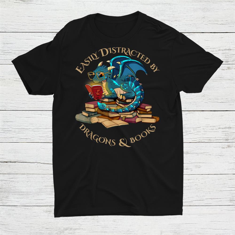 Easily Distracted By Dragons And Books Nerd Dragon Shirt