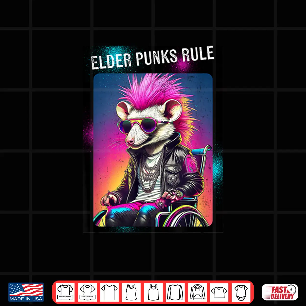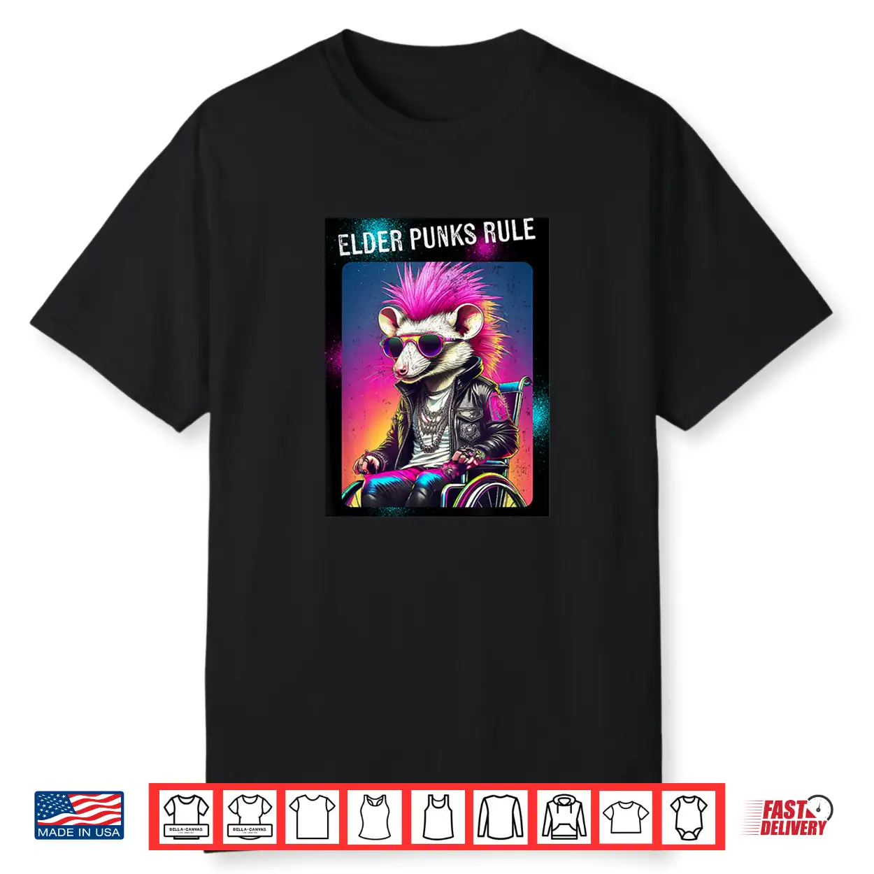 Elder Punks Rule Cartoon Punk Opossum With Mohawk Shirt