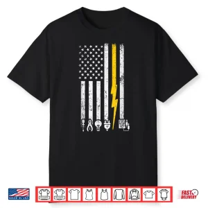 Electrician Icons Us Flag Electrical Patriotic Shirt