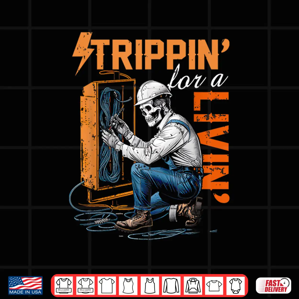Electrician Lover Trippin For A Livin Skeleton Worker Shirt