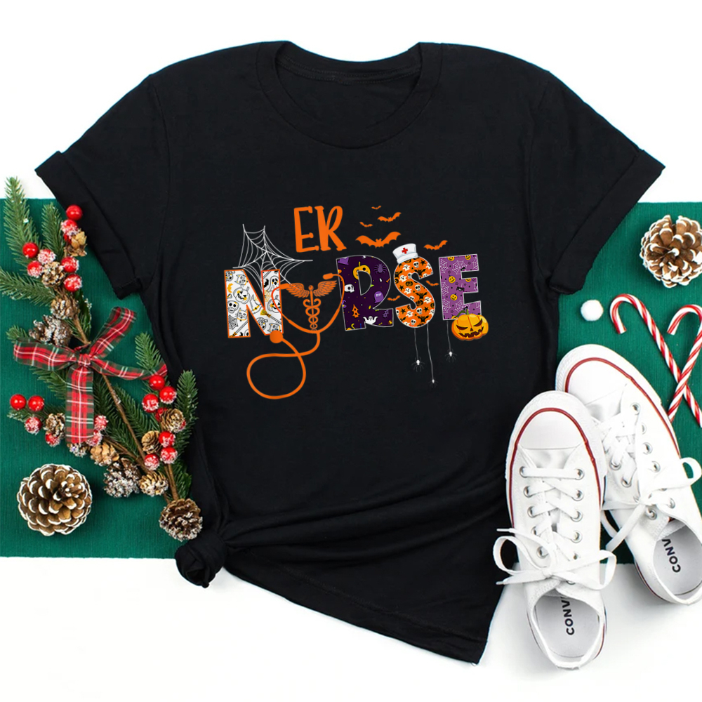 Emergency Nurse Er Nurse Halloween Spooky Season Nursing Shirt, hoodie, sweatshirt, long sleeve and ladies T-shirt