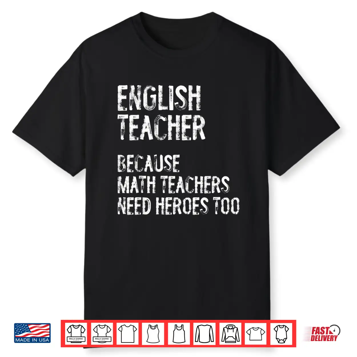 English Teacher Because Math Teachers Need Heroes Too Funny Shirt