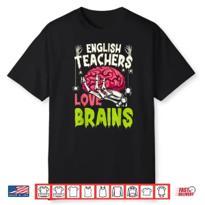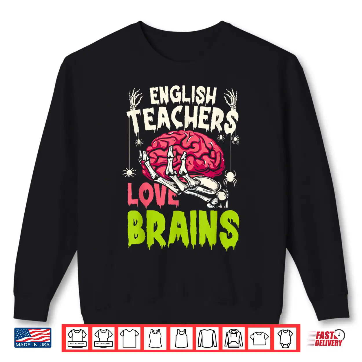 English Teachers Love Brains Skeleton Halloween Funny Shirt