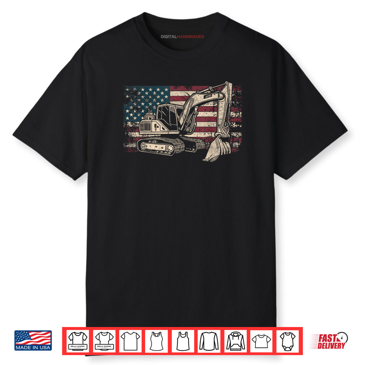 Excavator American Flag Patriotic Excavator 4th of July Shirt, Patriotic Excavator July 4th American Flag Tee Shirt, Heavy Machinery Operator Holiday Gift Shirt, Construction Worker USA Pride Apparel Style Shirt, Fourth Of July For The Digger Driver Shirt, Red White And Blue Construction Theme Fun Shirt, Stars And Stripes And Big Machines Shirt, All American Blue Collar Worker Shirt, Building America With My Excavator Shirt, Funny And Patriotic Operator Life Shirt