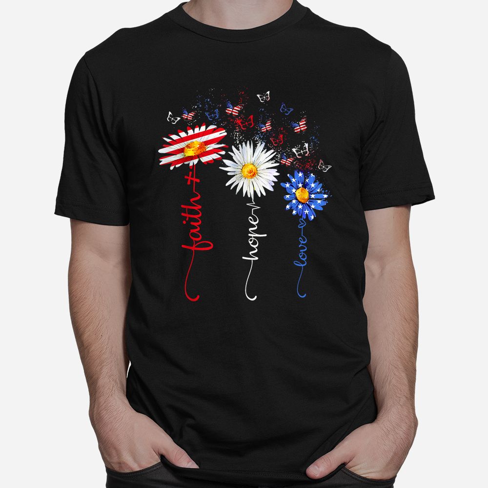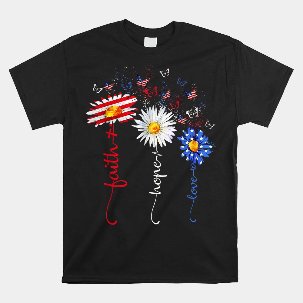 Faith Hope Love Butterfly Daisy Christians God Shirt
