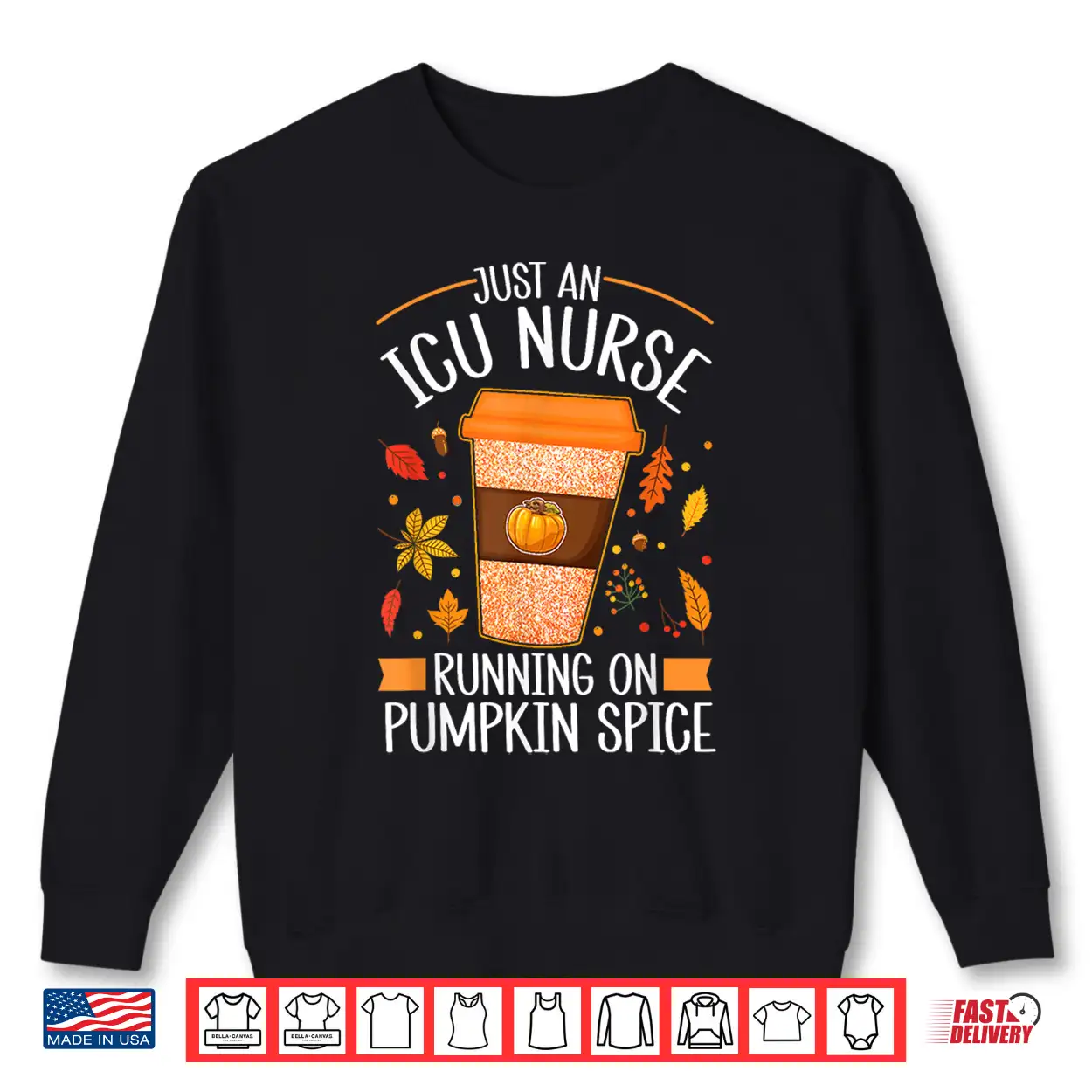 Fall Season Icu Nurse Running On Pumpkin Spice Latte Coffee Shirt