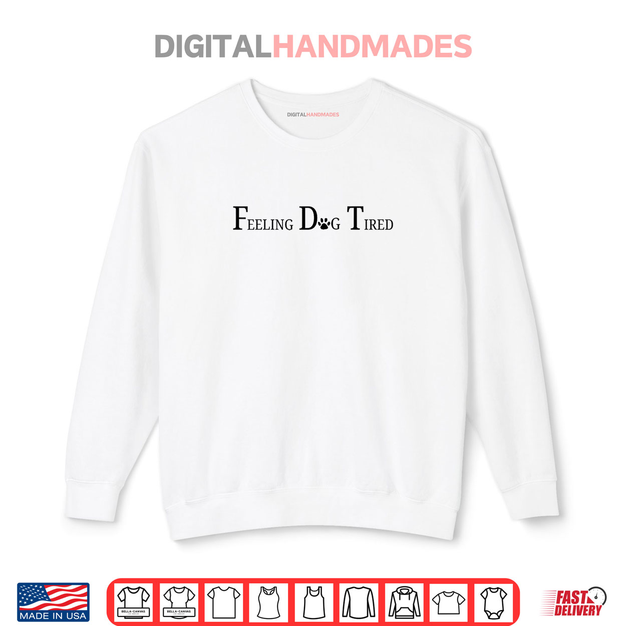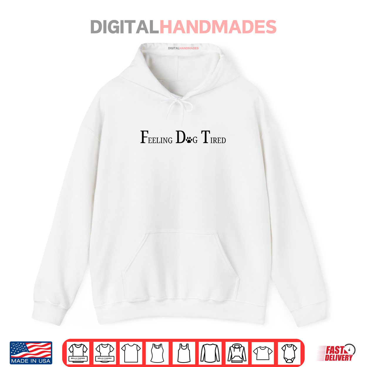 feeling dog tired funny, tired quote graphic tee, spring quirky apparel, funny dog humor shirt, bold tired design, playful casual spring fashion, lighthearted exhaustion tee, springtime whimsical style, humorous feeling shirt, cute animal apparel