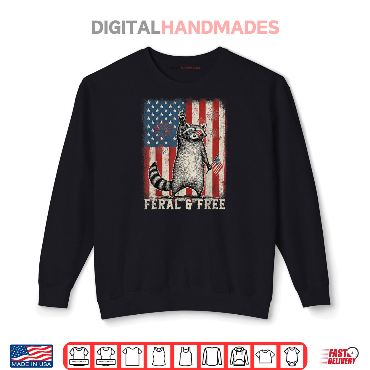 Feral But Free Raccoon July 4th Patriotic Shirt for Family Shirt
