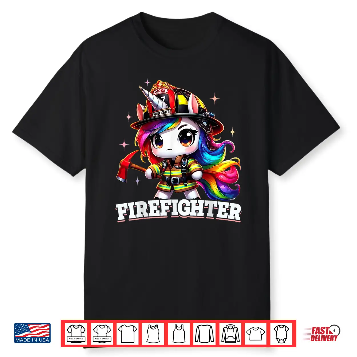 Firefighter Unicorn Kids Girls Women Firefighting Shirt
