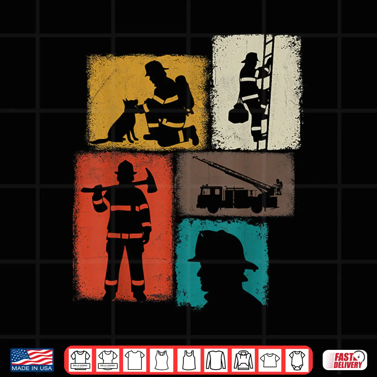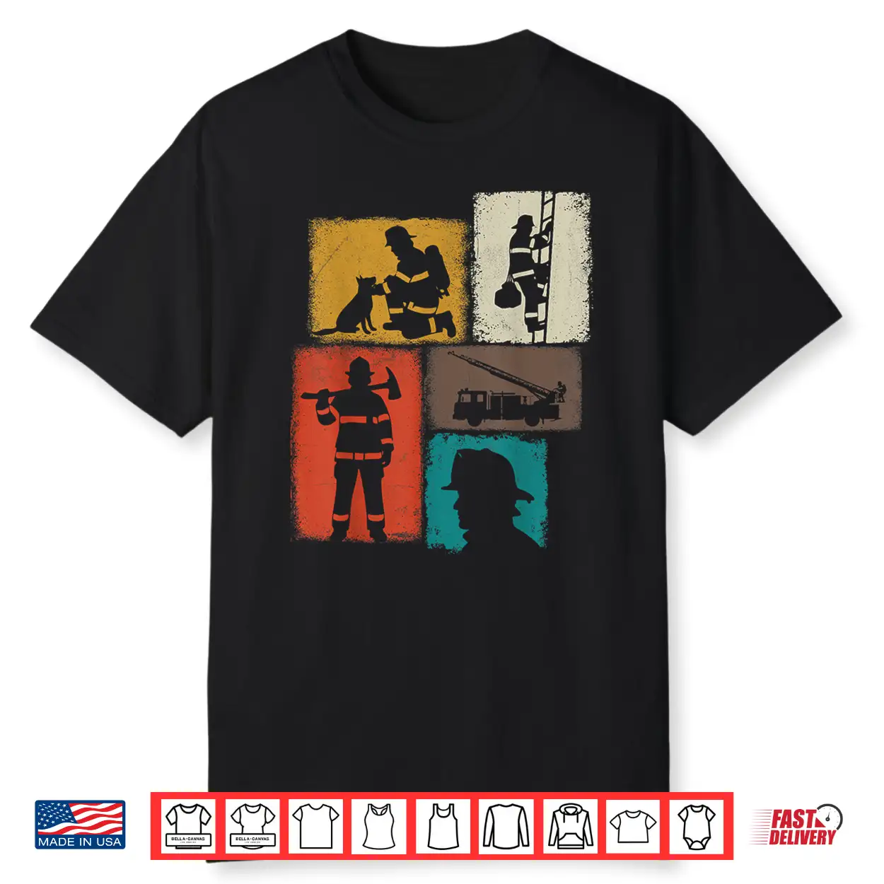 Firefighter Vintage Collage Fireman Men Hero Graphic Shirt