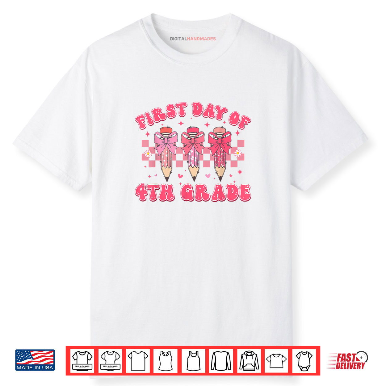 First Day Of 4th Grade Coquette Back To School Girls Kids Shirt