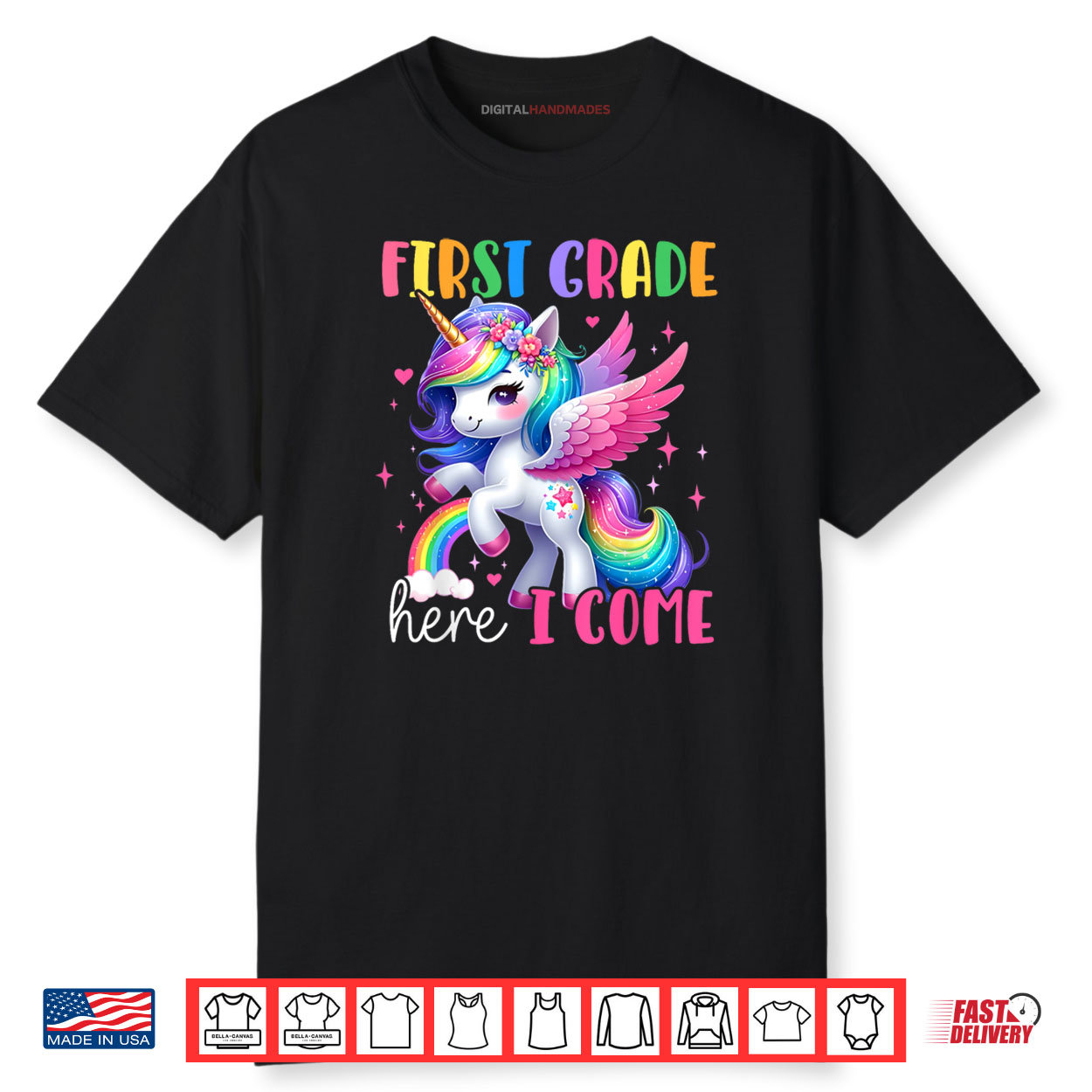 First Grade Here I Come Unicorn Back To School Shirt, Unicorn First Grade Here I Come Tee Top Wear Fun Shirt, Back To School Magical Unicorn Gift Style Proud Fan Shirt, Cute Girls Starting First Grade Apparel Lady Chic Sweet Shirt, Ready To Crush 1st Grade Unicorn Cute Love Heart Ride Shirt, Awesome First Day Of School Fun Hip Hop Rule Lady Proud Shirt, Magical Learning Adventure Style Fan Chic Sweet Cute Love Heart Shirt, Believe In Yourself In First Grade Heart Ride Hip Hop Rule Lady Proud Fan Shirt, Sparkly Unicorn For Little Students Chic Sweet Cute Love Heart Ride Hip Hop Rule Lady Proud Fan Shirt, First Grade Is Magical Fan Chic Sweet Cute Love Heart Ride Hip Hop Rule Lady Proud Fan Shirt