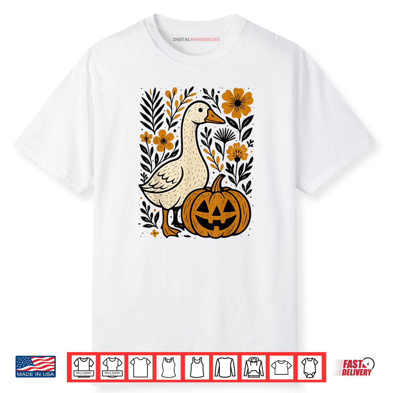 Floral Boho Silly Goose Pumpkin Cute Halloween Fall Shirt