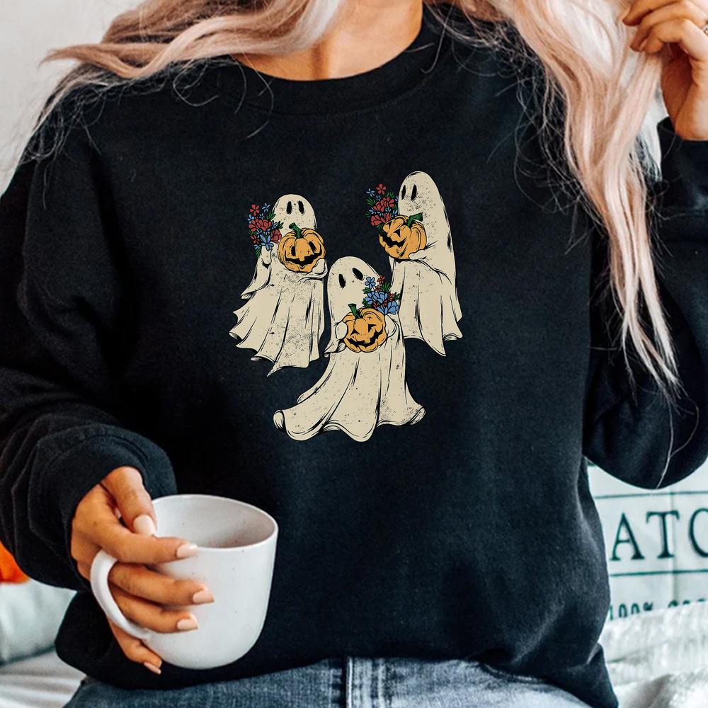 Floral Ghosts Halloween Spooky Season Shirt, hoodie, sweatshirt, long sleeve and ladies T-shirt