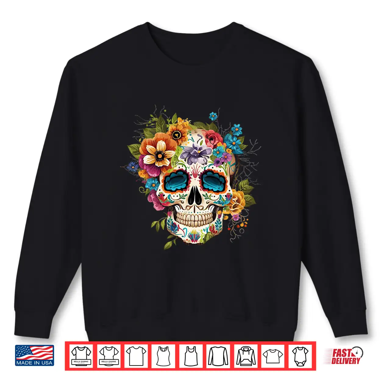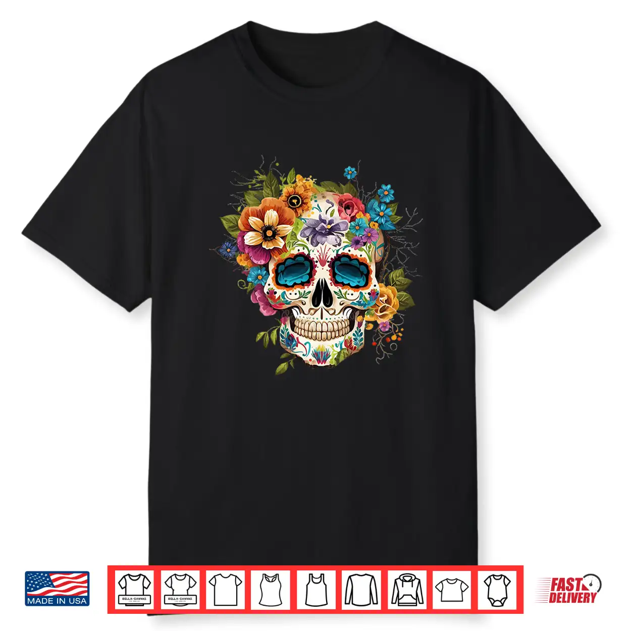 Floral Sugar Skull Dia De Los Muertos Gothic Day Of The Dead Shirt