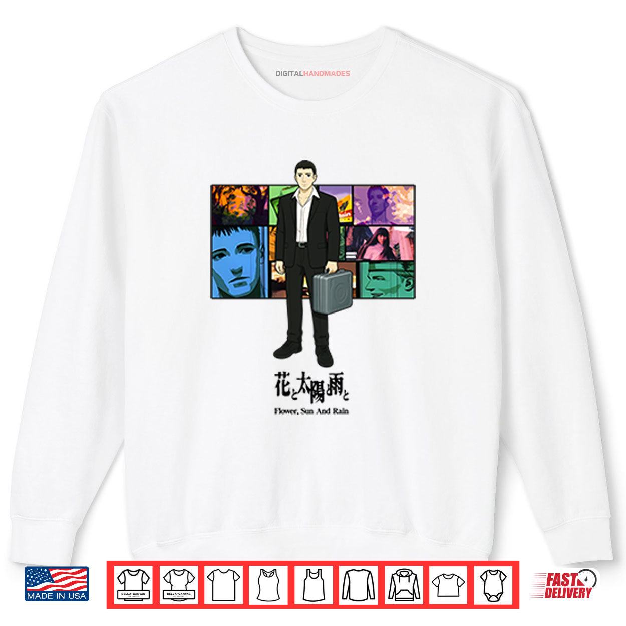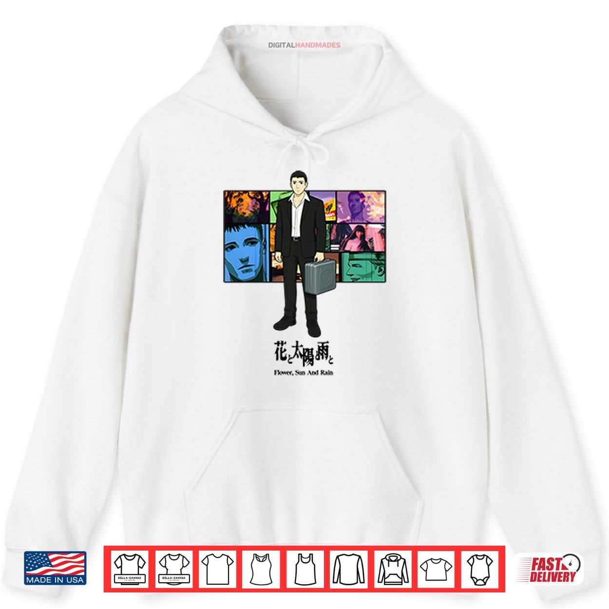 Flower Sun And Rain Shirt, Flower Sun And Rain Video Game Tee Shirt, Suda51 Cult Classic Fan Merch Gift Shirt, Grasshopper Manufacture Game Apparel Shirt, Niche Japanese Adventure Game Style Shirt, Kill The Past Gaming Series Fan Shirt, Retro Video Game Collector Item Shirt, Obscure And Artistic Gamer Gift Shirt, Sumio Mondo Lospass Island Shirt, Unique And Surreal Video Game Shirt