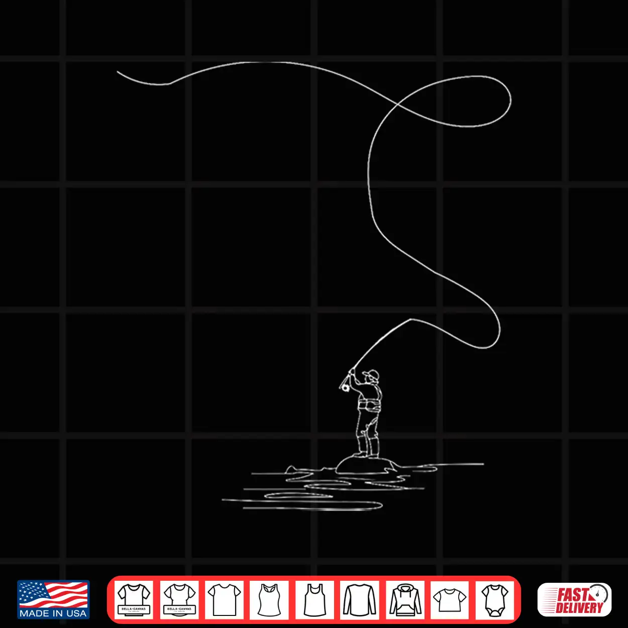 Fly Fishing Lover Line Art Fishrod Fly Rod Angling Fisherman Shirt