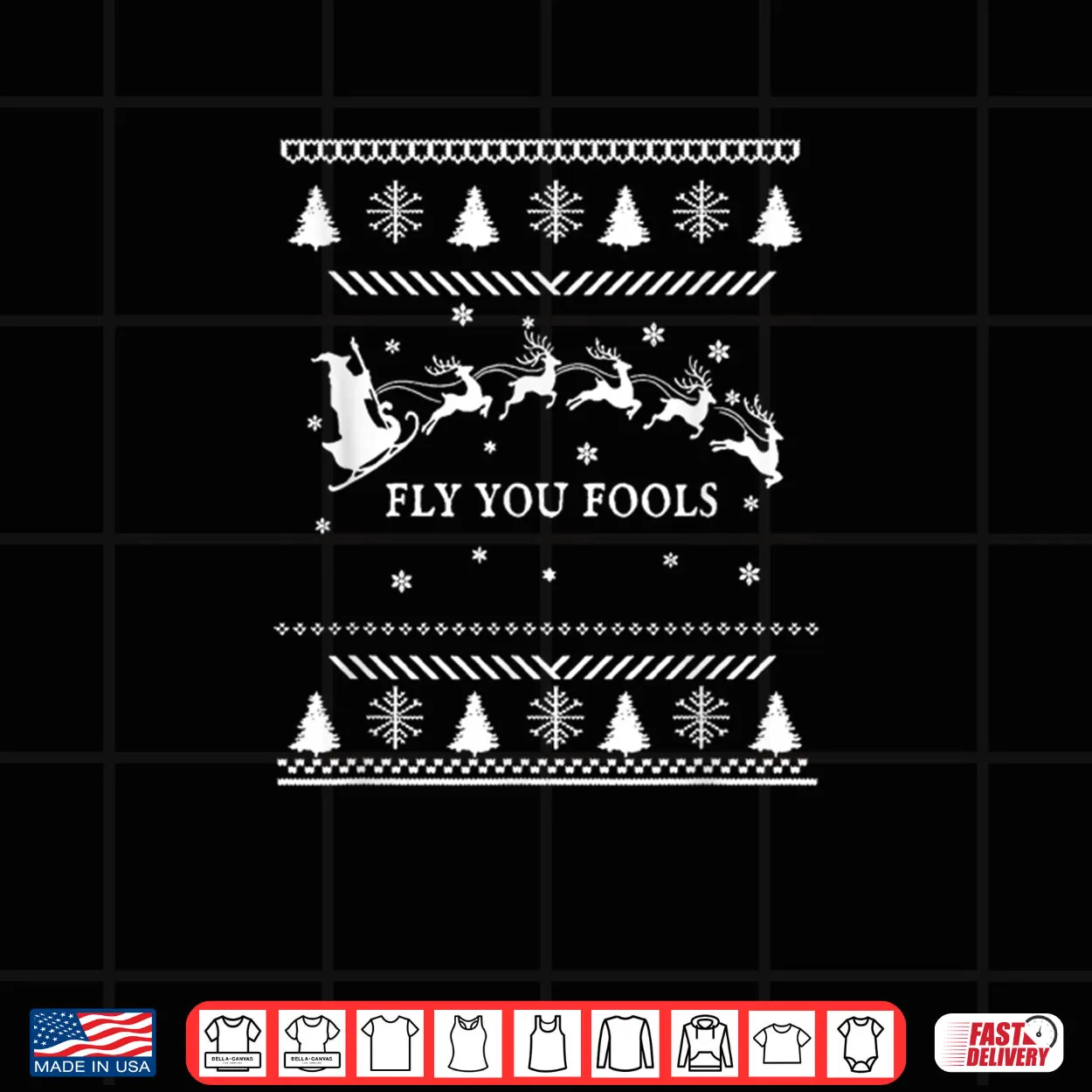Fly You Fools Wizard Santa Sleigh Reindeer Christmas Shirt