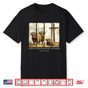 Follow The Word Not The Herd Christian Western Highland Cow Shirt