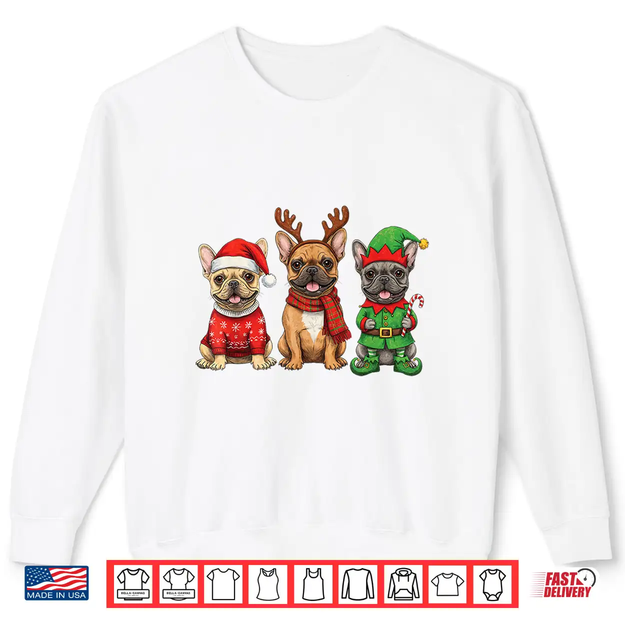 French Bulldog Christmas Lights Reindeer Santa Dog Lovers Shirt