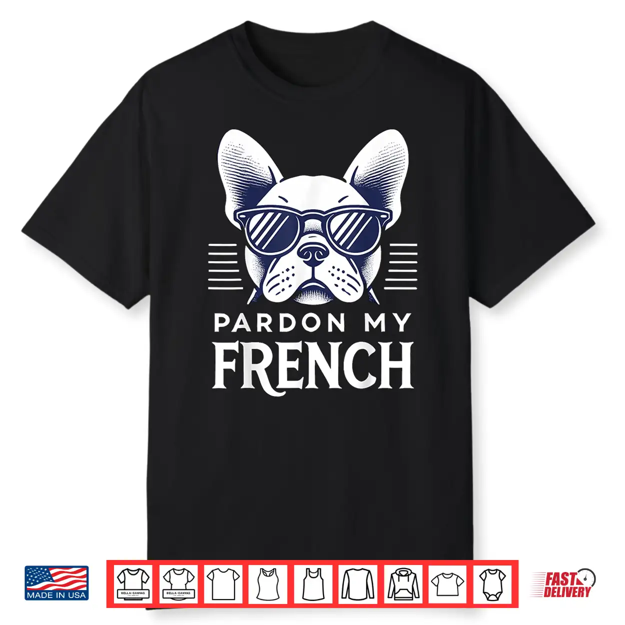 Pardon My French Funny Pun Frenchie Love Sarcastic Joke Slogan Relatable Dog Humor Daily Laugh Graphic Art Text Wear