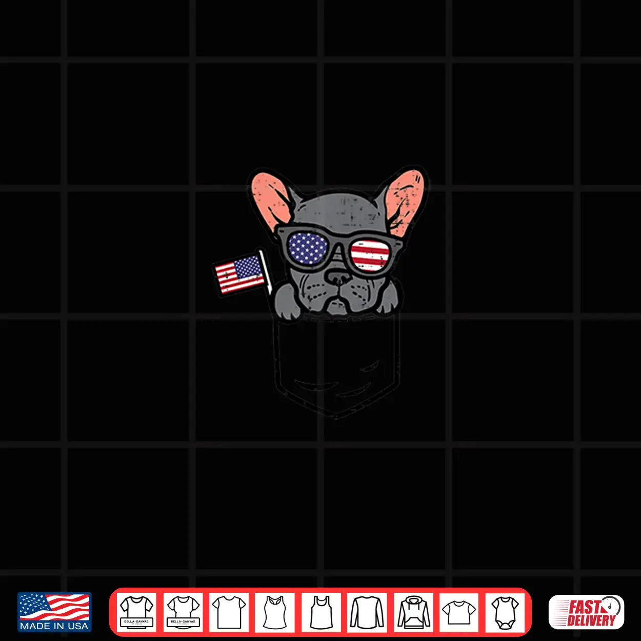 July Independence Frenchie, Vibe National, Day Minimal, Flag Holiday, Art USA, Dog Patriot, USA 4th, Pocket, Soul Summer