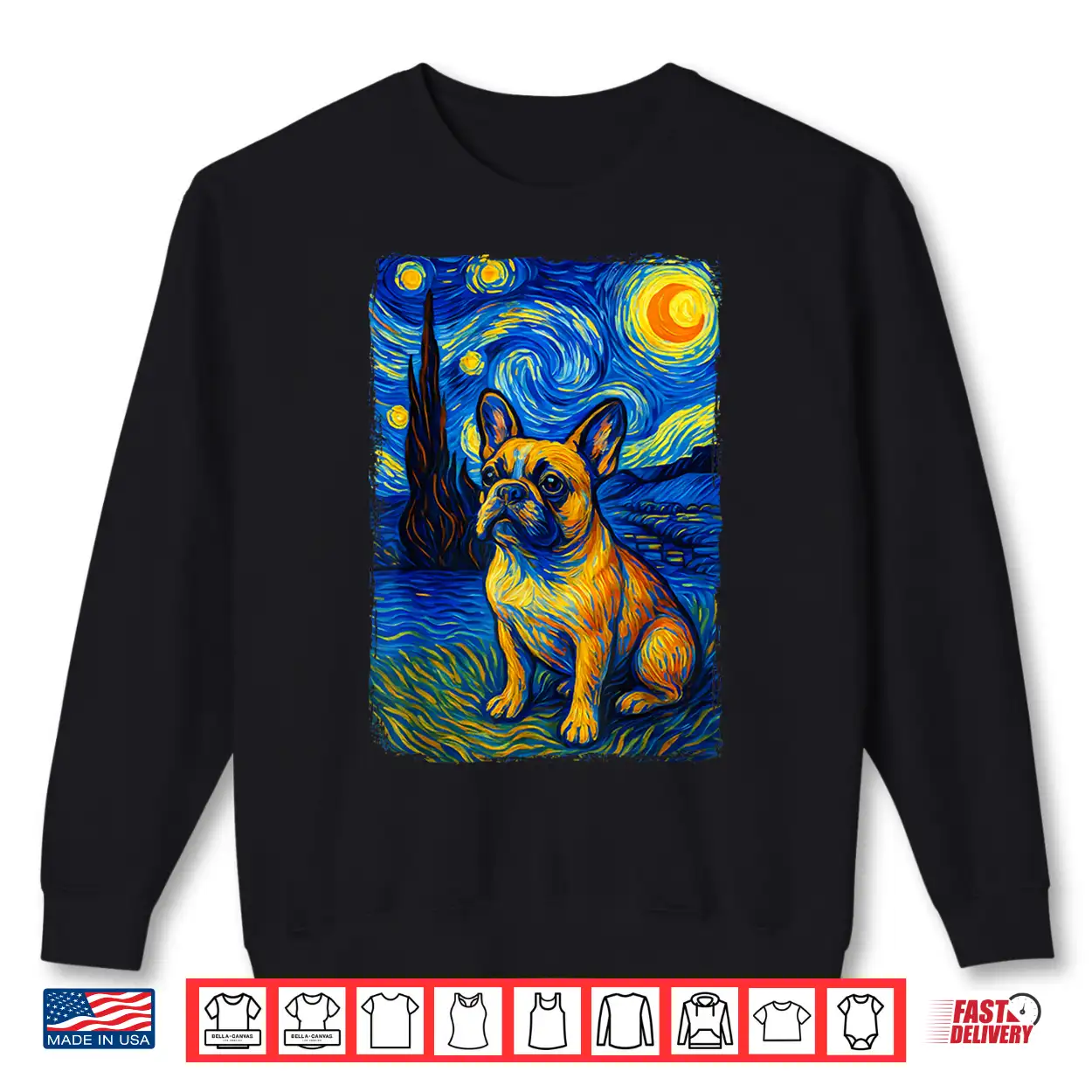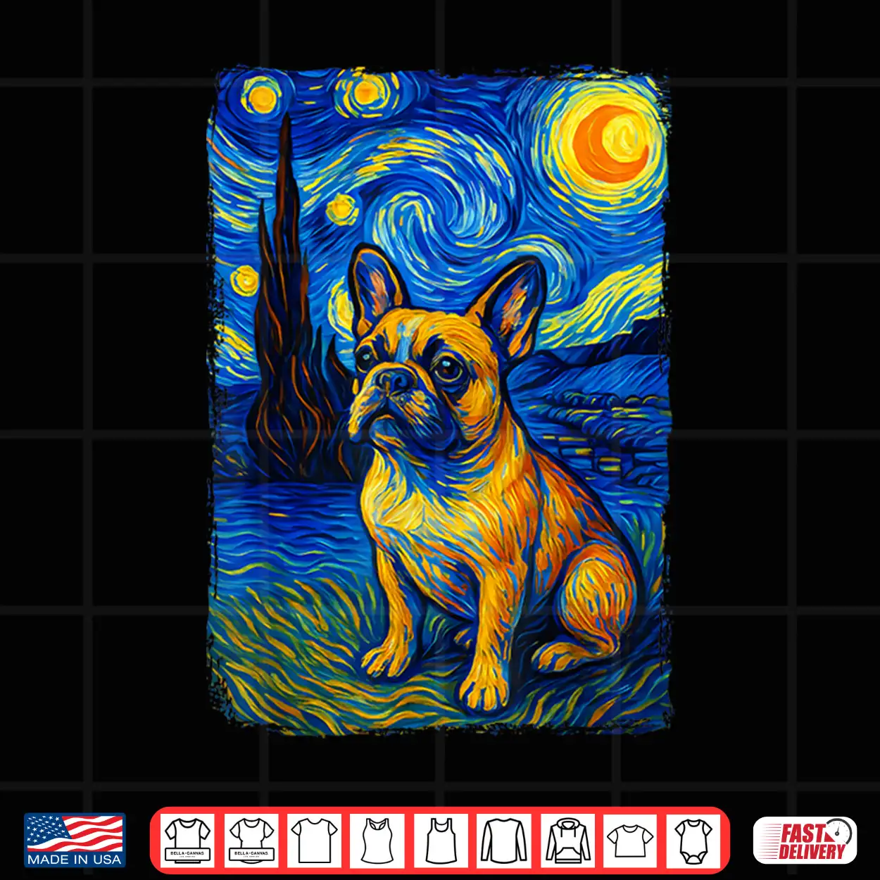 Style Museum, Gogh Frenchie, Sky, Vibe Artistic Graphic, Starry, Night Van, Impression Classic, Tee Creative Night, Art Post