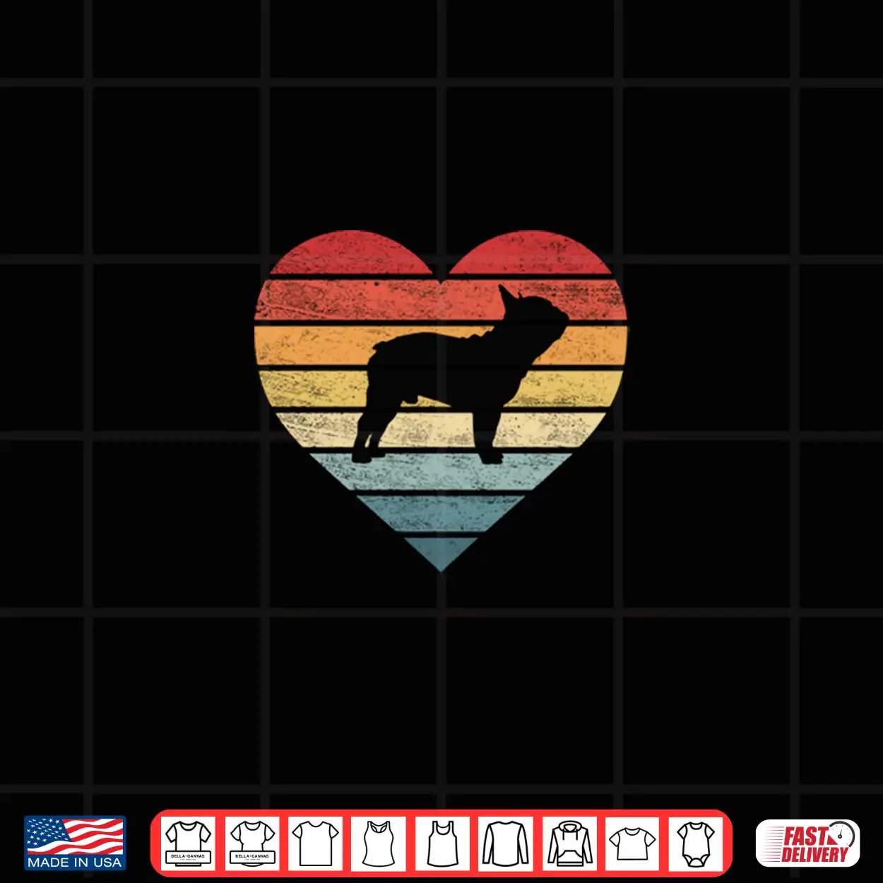 Retro, School Pet, Look, Gift Bulldog, Lover Art, Owner Dog, Vibe Mom, Fan Old, Design Classic, Sunset Frenchie, Silhouette Vintage