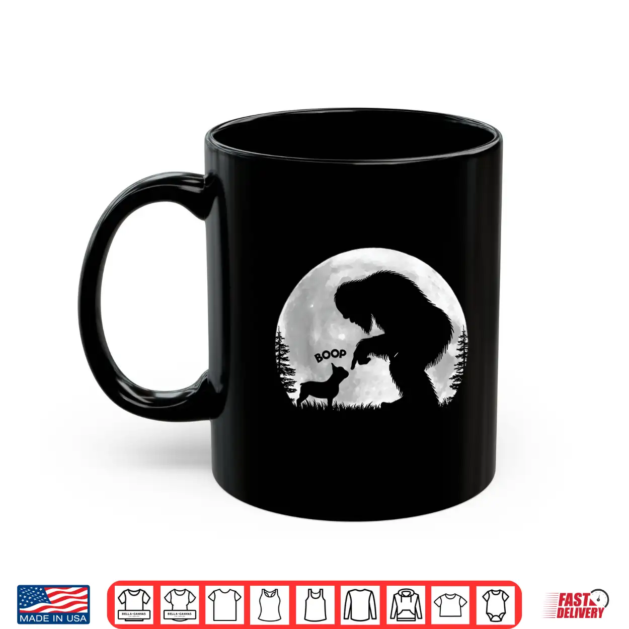 Fun Hand Boop Nose Bigfoot Sasquatch French Bulldog Moon Shirt